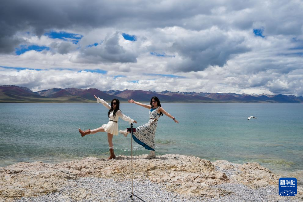7月16日,在西藏拉萨市当雄县纳木错扎西岛景区,来自世界各地的游客享受着夏日纳木错清爽的风。纳木错湖面海拔4718米,是世界上面积超过1000平方公里的湖泊中海拔最高的湖泊。2024年,纳木错扎西岛景区接待游客约40万人次。