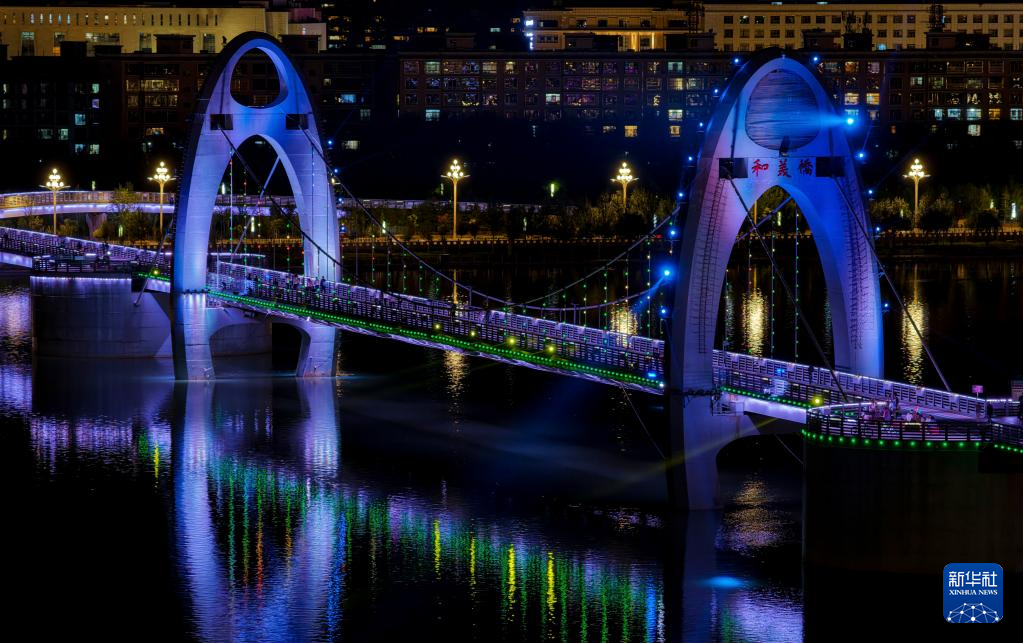 这是7月30日拍摄的和美桥,该桥供行人和非机动车通行(无人机照片)。