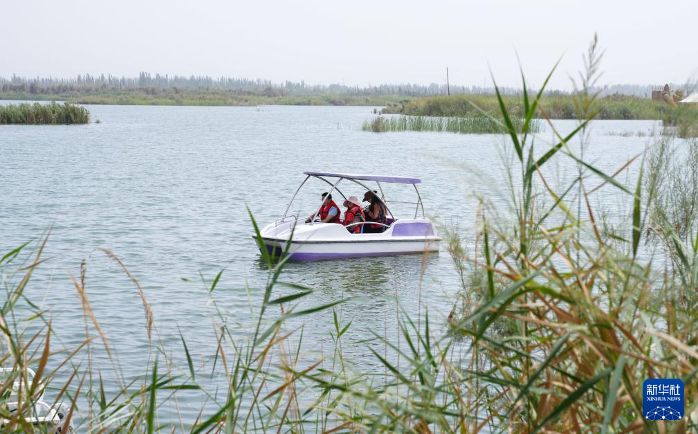 8月6日,人们在拉里昆国家湿地公园乘船。