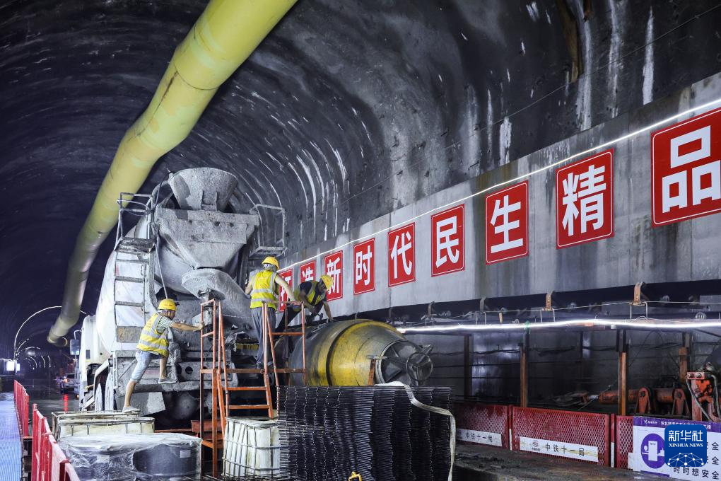 施工人员在大仁支洞工区干线隧洞TBM工区转运混凝土砂浆(8月11日摄)。
