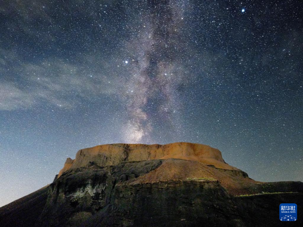 这是8月30日在内蒙古乌兰察布市察哈尔右翼后旗乌兰哈达火山地质公园内拍摄的银河下的6号火山(堆栈合成照片)。