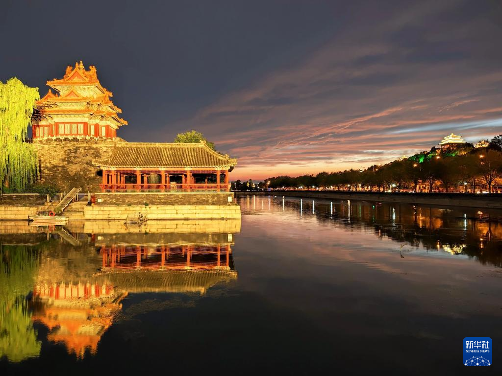 8月30日在北京故宫角楼畔拍摄的晚霞。
