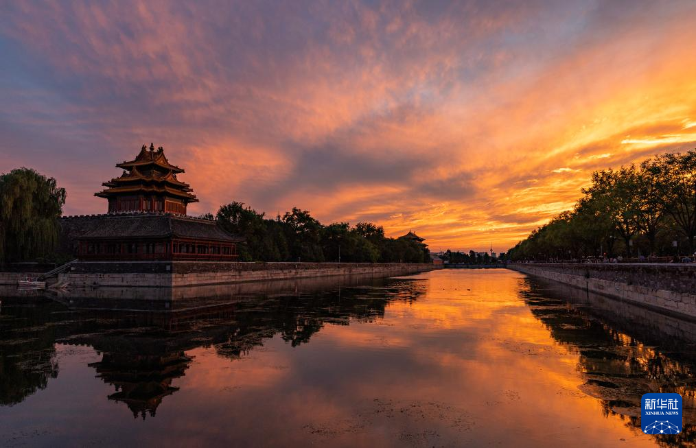8月30日在北京故宫角楼畔拍摄的晚霞。