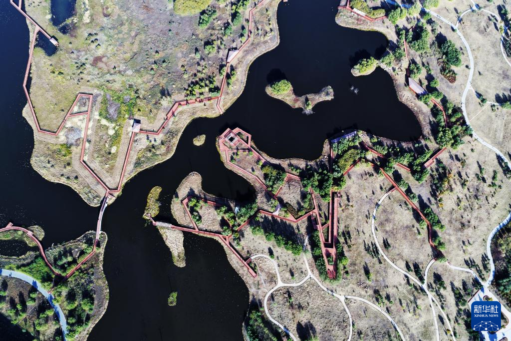 这是10月7日拍摄的哈尔滨群力外滩湿地公园景色(无人机照片)。