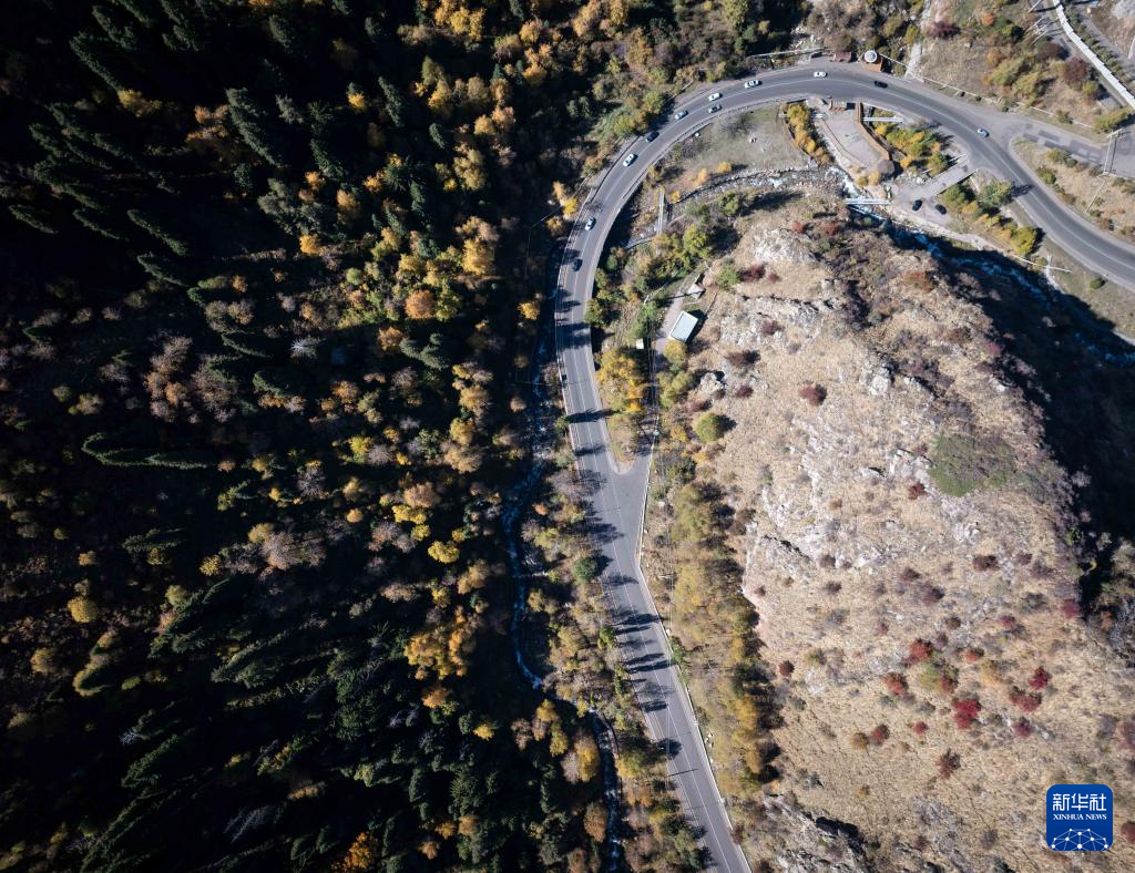 10月6日,车辆在哈萨克斯坦阿拉木图市郊的山区道路上行驶。