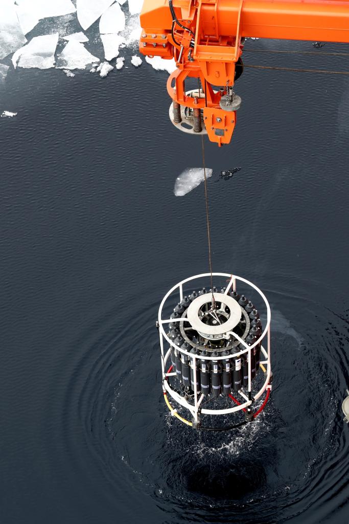 “早先‘雪龙’号的实验室还没经过改造,没有大型CTD(温盐深剖面仪),只有一个小型CTD,每瓶只能采2.5升的水,生物化学排水要非常吃力地去挂手动翻盖采水器。”郝锵说,现在不仅有大型CTD,而且配有月池系统,即使在100%的密集浮冰区也能从容作业。