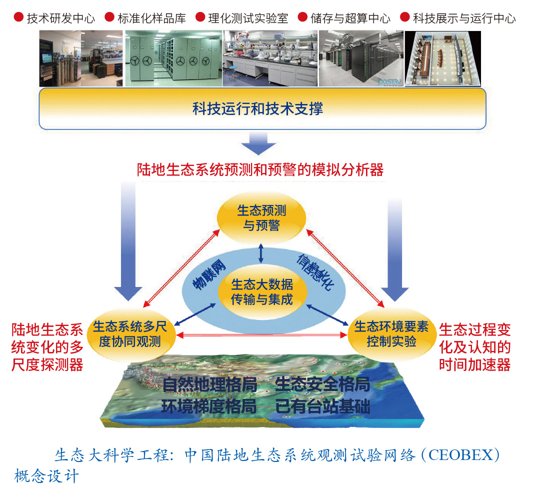 全球变化和可持续发展等一系列全球化的资源环境问题日益严峻,成为国际社会关注及科学研究热点,生态学的研究重点也逐渐开始由小尺度的个体、群落和生态系统向区域、大陆乃至全球尺度转变。同时,伴随传感器技术和信息网络技术发展,生态系统观测也从短时间观测逐渐向长期观测以及生态系统的宏观结构和生态服务时空格局变化协同观测转变;由过去的定位及小规模合作观测向区域甚至全球大规模联合的网络化观测、天-空-地立体综合观测方向转变。生态学研究已经进入大数据时代,如何应用大数据技术,实现传统的基于过程的生态学研究与基于大数据驱动的生态学研究的有机整合,推动生态学大理论发展、区域及全球生态系统演变机理研究,支撑以应对全球气候变化、生态系统功能维持等为核心的人类社会可持续发展理论和应用研究,是大数据时代生态观测研究面临的重大挑战及机遇。