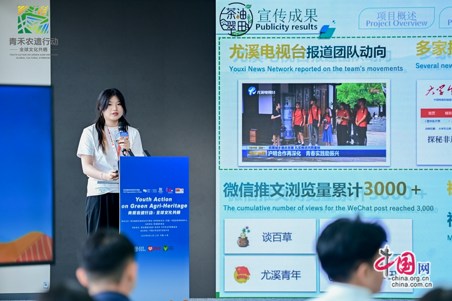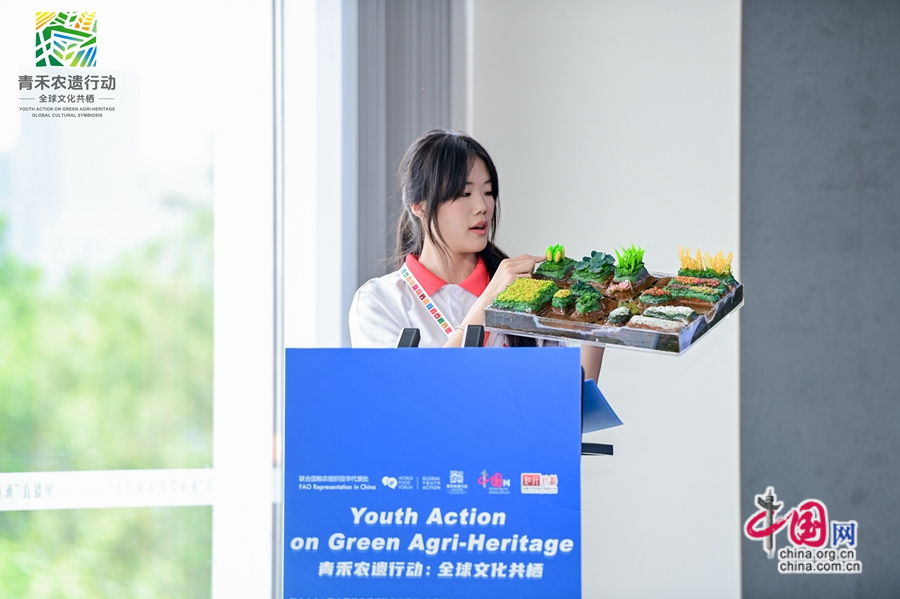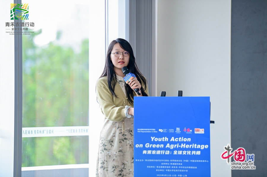 图为苏州大学学生杨如一围绕浙江安吉农业技艺与生态智慧分享农业文化遗产地的创新解决方案。