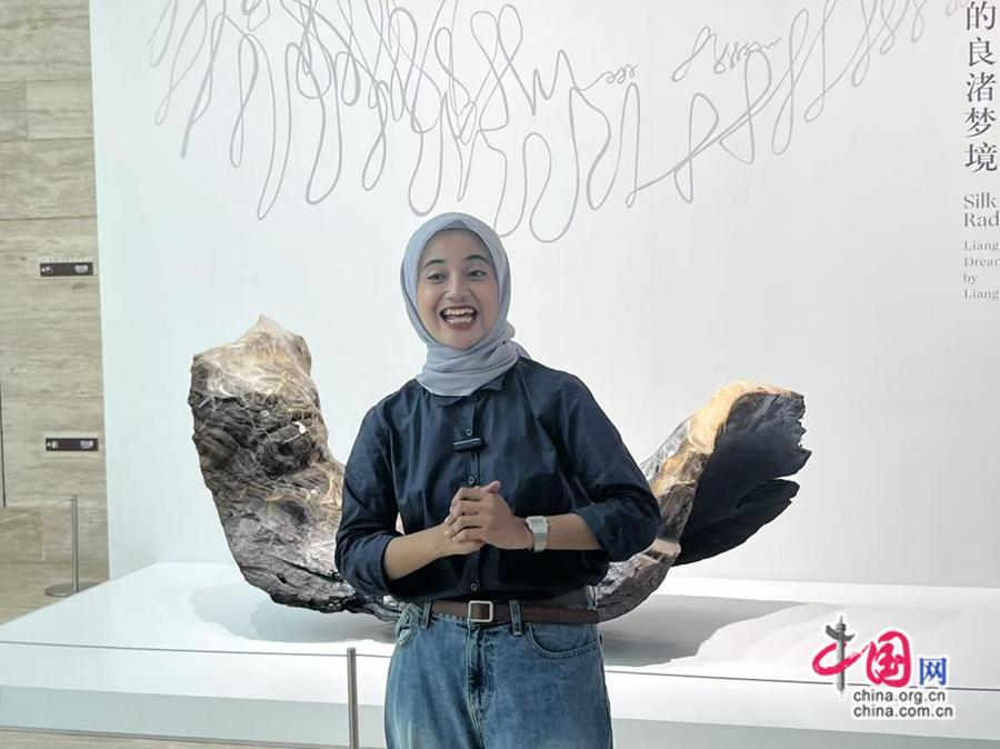 印度尼西亚拉贾瓦里电视台开云online(中国)记者奥利维娅·费拉里在拍摄视频。中国网徐林/摄影