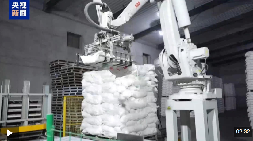 在这个生产线上,工人有了数字“工友”。面粉的分拣靠的是自动码垛机,也就是一个超级机械手来完成。而面粉“坐着”螺旋式的输送机,进入到分拣环节。