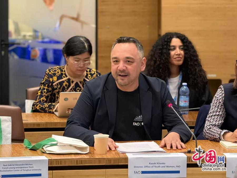 图为联合国粮农组织青年妇女司司长北冈和树在2025世界粮食论坛青禾农遗对话会致欢迎辞。