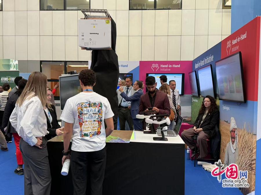 图为各国嘉宾在2025年世界粮食论坛活动现场参观交流。