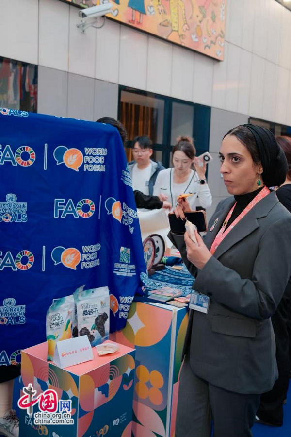 “2025世界粮食论坛青禾农遗对话会”举办期间,盐边特产在意大利罗马联合国粮农组织总部设置展区。世界粮食论坛(中国)供图