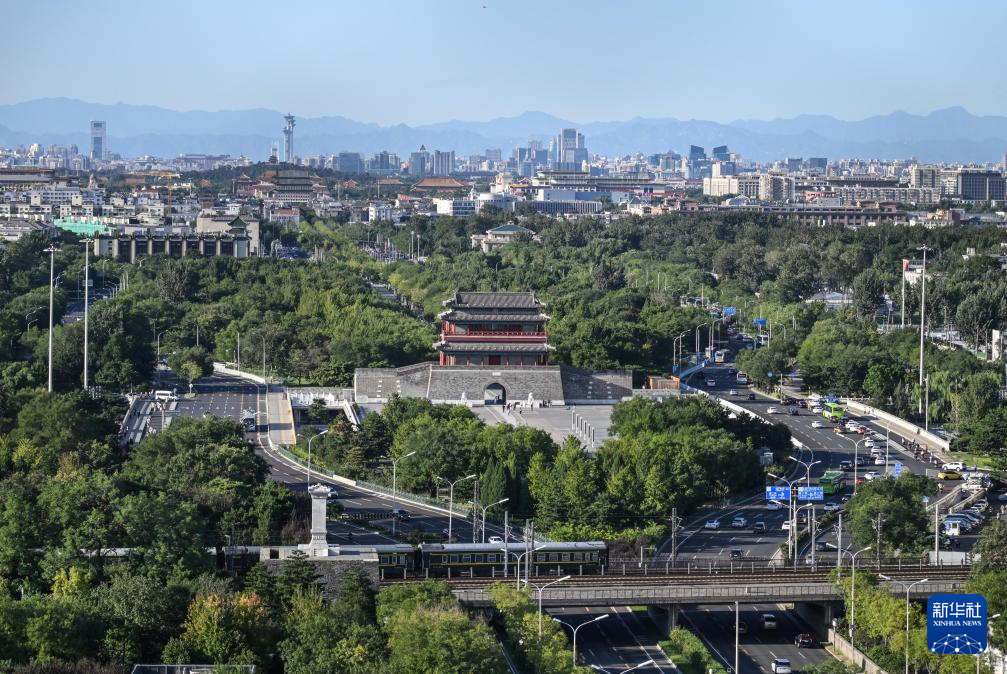这是9月17日拍摄的北京永定门(前)一带景观。