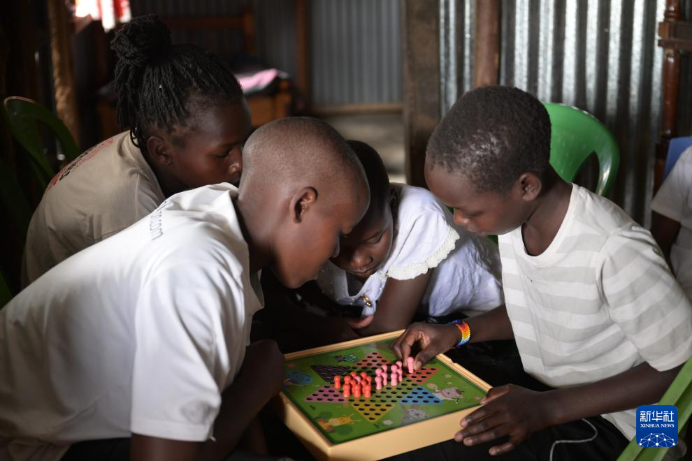 8月31日,在肯尼亚西南部纳罗克郡西纳罗克区艾通镇的女童救助中心,女孩们在下棋。