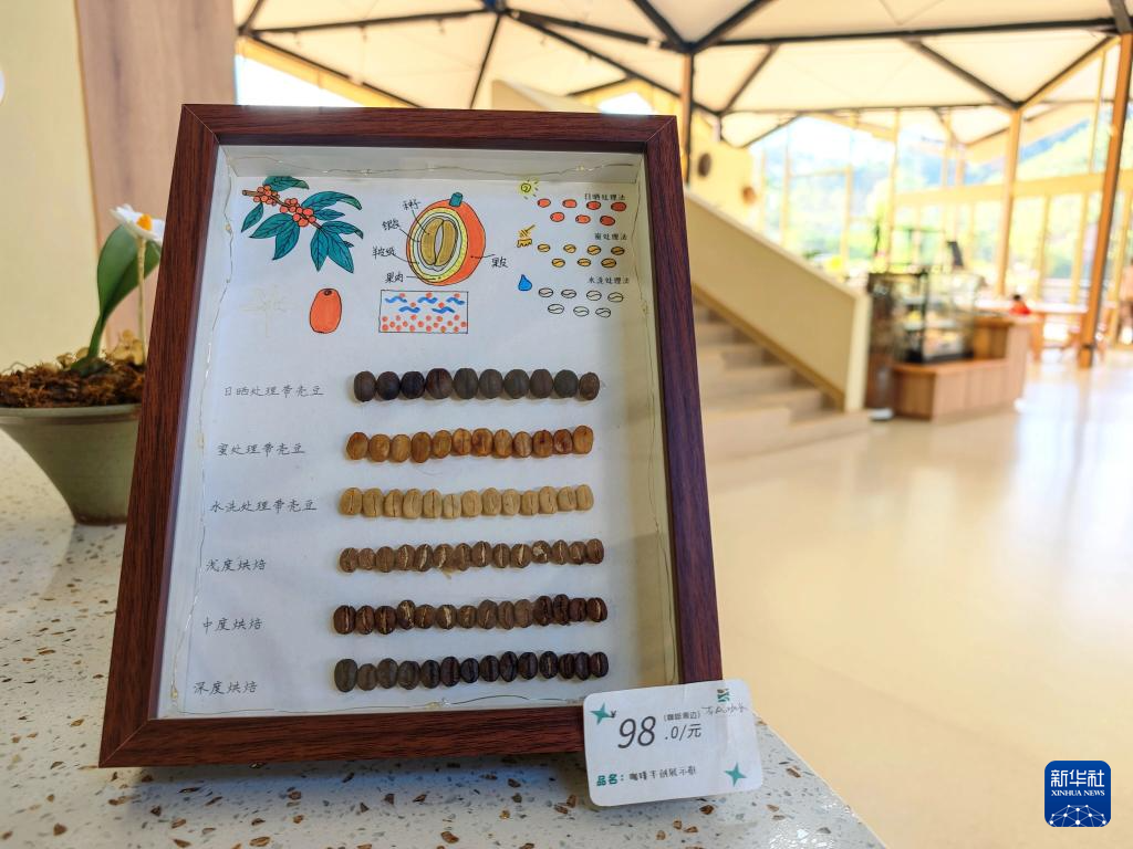 这是普洱市思茅区南屏镇南岛河村白沙坡小组的“美丽星村·有风咖谷”展示的咖啡周边(9月20日摄)。