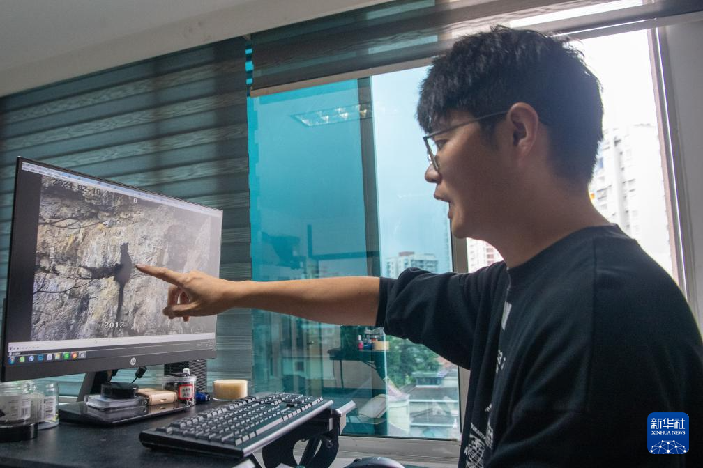 9月23日,在重庆金佛山国家级自然保护区管理事务中心,工作人员李新通过视频分析黑叶猴生活习性。