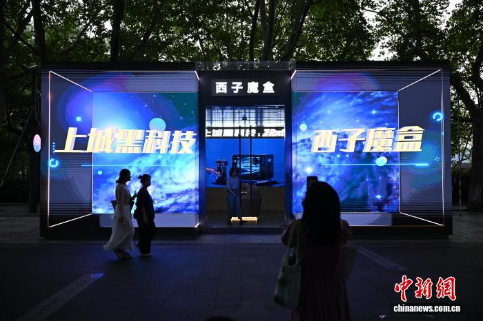 9月24日,配备裸眼3D屏幕、展销潮流科技产品的“西子魔盒”亮相西湖边。当日,购在中国·2025数字消费嘉年华暨杭州数字贸易时尚消费周,在浙江杭州西湖畔的上城湖滨路步行街启动。不少数智时尚消费产品和业态在此亮相,吸引民众体验。中新社记者 王刚 摄