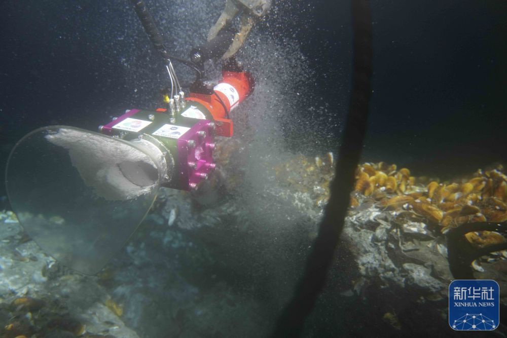 ↑9月18日,采火装置在海底冷泉喷口采集可燃冰。(广州海洋地质调查局供图,张亚念 摄)