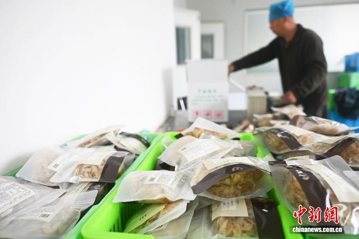 10月9日,在位于甘肃省兰州市七里河区一百合加工基地内,工作人员进行百合产品生产加工作业。中新社记者 李亚龙 摄
