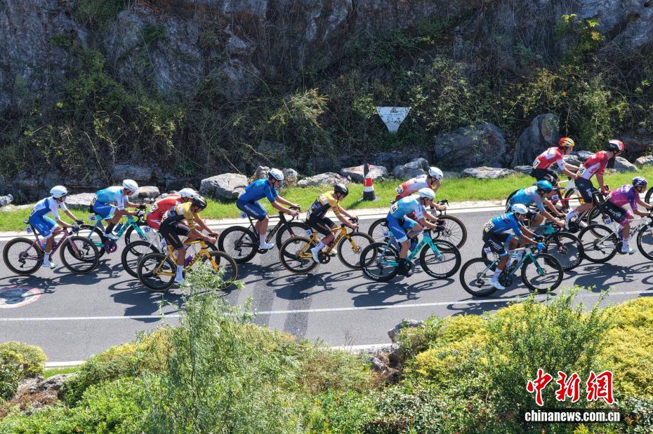 10月9日,江苏南京,参赛车手骑行在赛道上。当日,2025第十三届环太湖国际公路自行车赛暨长三角穿越赛在江苏园博园开赛,来自国内外的22支自行车车队、147名职业车手在96.49公里的园林赛道上展开速度与耐力的对决。据悉,此次比赛规划了南京江宁、苏州吴江、南通启东、无锡滨湖四大赛段,串联起不同城市的生态风光,为参赛车手们提供多元竞技场景。(无人机照片)
