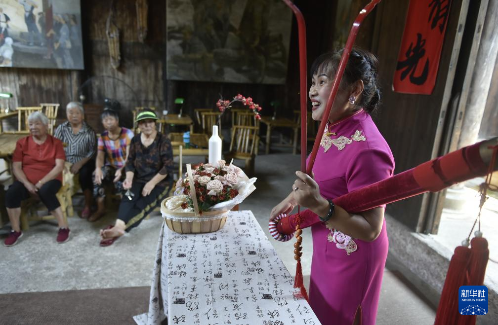 10月12日,民间艺人在寺平村内为观众表演国家级非遗项目“金华道情”。