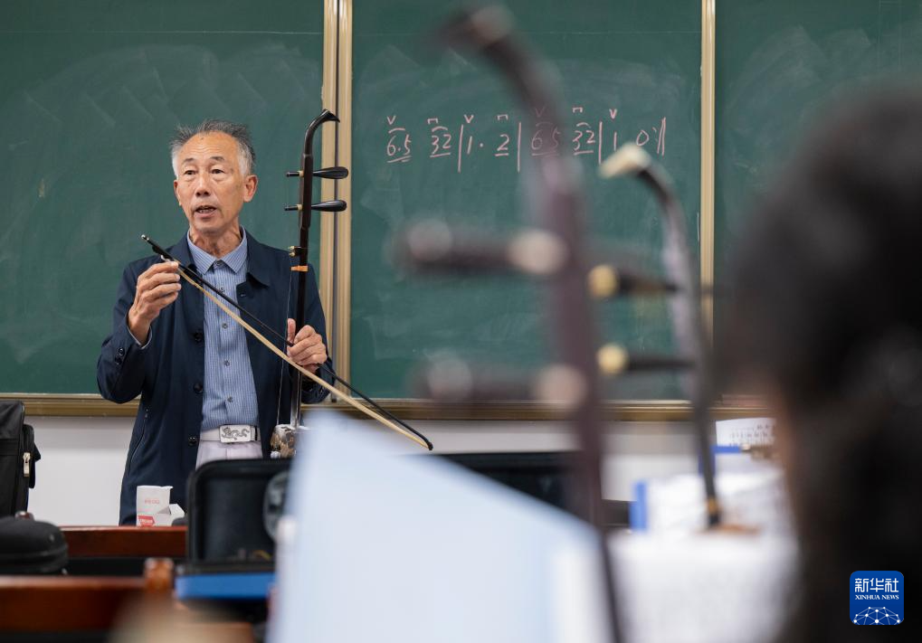 10月15日,在孝昌县老年大学,老师为学员们上二胡课。