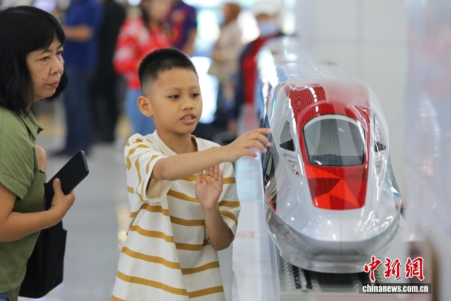 当地时间10月17日,一对母子在印度尼西亚雅加达哈利姆高铁站研究高铁模型。截至10月17日,雅万高铁正式开通运营满两年,累计发送旅客超1200万人次,单日最高旅客发送量达2.67万人次,动车组列车安全运行超565万公里,运输安全平稳有序,服务品质不断提升,辐射带动作用日益显现。
