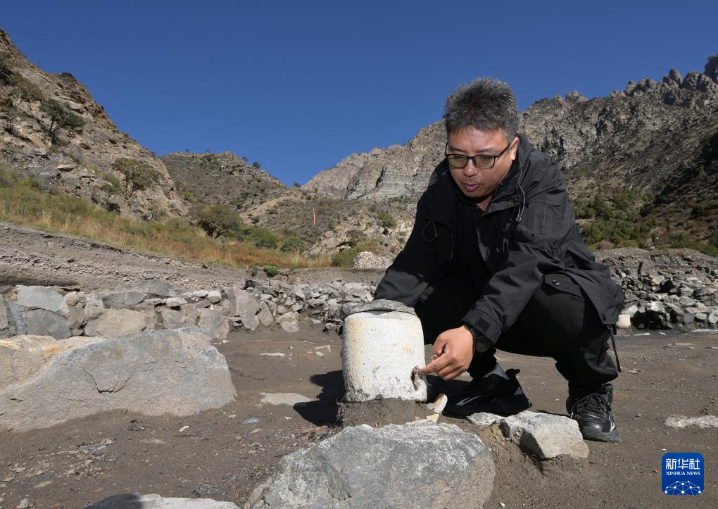 苏峪口瓷窑址考古队执行领队柴平平在2025年度发掘区一处作坊遗迹前介绍瓷器烧制工艺(10月13日摄)。