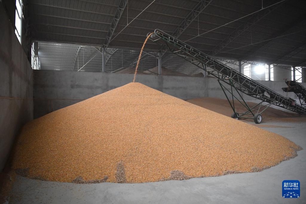 这是陕西省乾县新阳镇三星村秋粮收购烘干服务点烘干后入库的粮食(10月20日摄)。