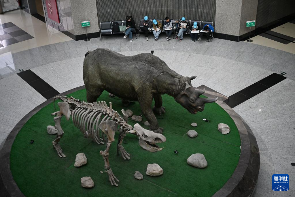 10月26日,学生在西北农林科技大学博览园动物博物馆临摹披毛犀标本。