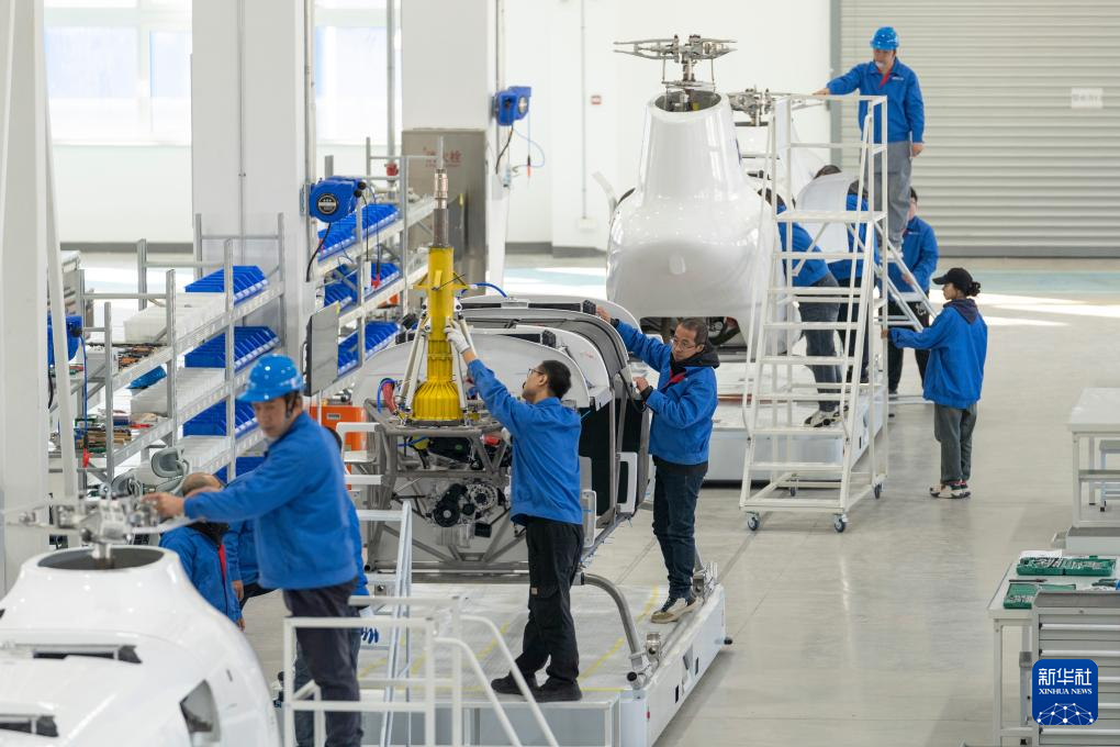 10月30日,在哈尔滨市平房区的哈尔滨联合飞机科技有限公司生产厂区,工作人员装配T1400无人直升机。