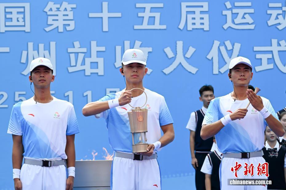 11月2日,第十五届全国运动会火炬传递在香港、澳门、广州、深圳4个城市同步举行。图为在火炬传递广州站收火仪式。