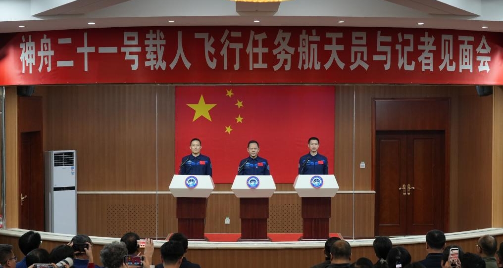 神舟二十一号载人飞行任务航天员与记者见面